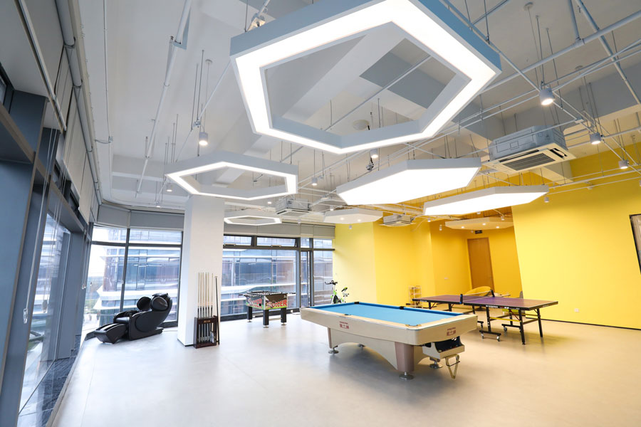 - 室内健身活动室、室外羽毛球场&篮球场,开设瑜伽课&舞蹈课,劳逸结合,丰富你的职场生活